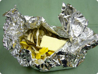 ホイルでしっかりくるみ、オーブントースターで焼き上げます。(25分位) |