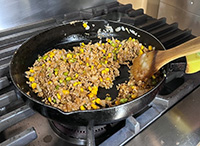 肉に火が通ったら☆を加えて味付けし、軽く炒めたらタコミートの完成です! ※☆だけフライパンの端に集めてふつふつするまで熱を通してから混ぜると、香ばしさUP! |