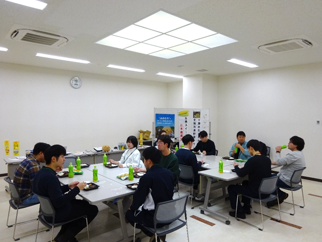また、座談会ではJAめむろ青年部部員との食事会を実施し、1日のスケジュールややりがいを感じてること、学生生活の思い出話などで盛り上がりました。